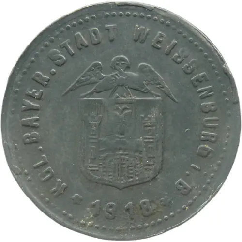 | نوشتههای روی سکه | KGL. BAYER. STADT WEISSENBURG i. B ★ 1918 ★ |