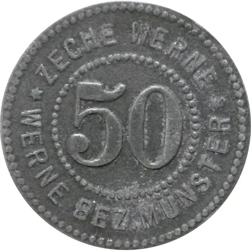 Obverse lettering ZECHE WERNE 50 ✶ WERNE BEZ. MÜNSTER ✶