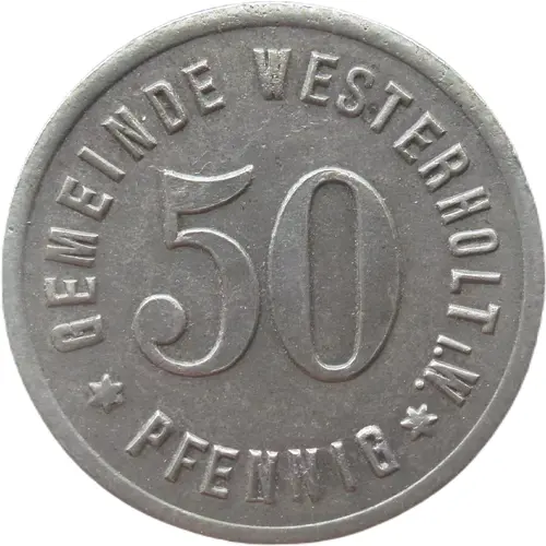 | 表面の銘文 | GEMEINDE WESTERHOLT i.W. 50 ✶ PFENNIG ✶ |