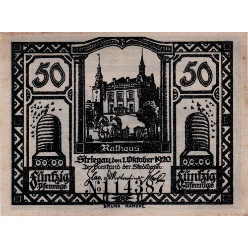 Obverse lettering Rathaus Striegau den 1.Oktober.1920