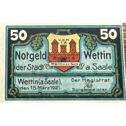 | Issuer | City of Wettin (Prussian province of Saxony) |