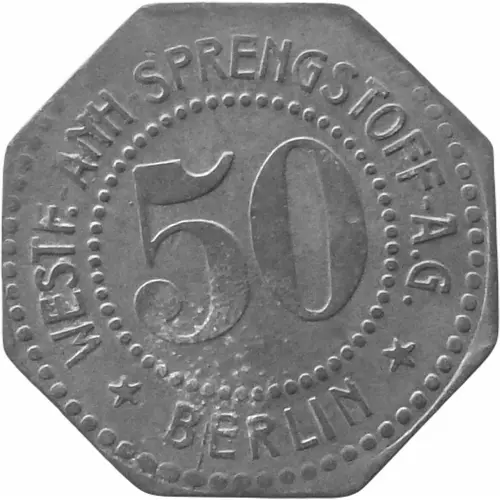 | Obverse lettering | WEST.-ANH.-SPRENGSTOFF A.G. 50 BERLIN |