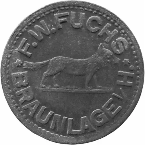 | Obverse lettering | F.W. FUCHS BRAUNLAGE I/H. |