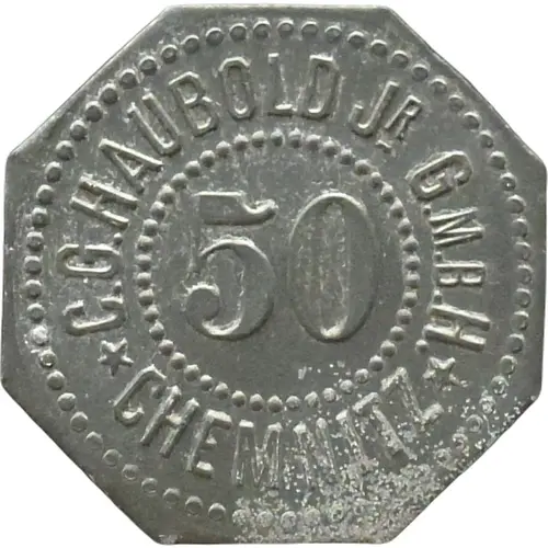 | Obverse lettering | C.G. HAUBOLD JR G.M.B.H. 50 CHEMNITZ |