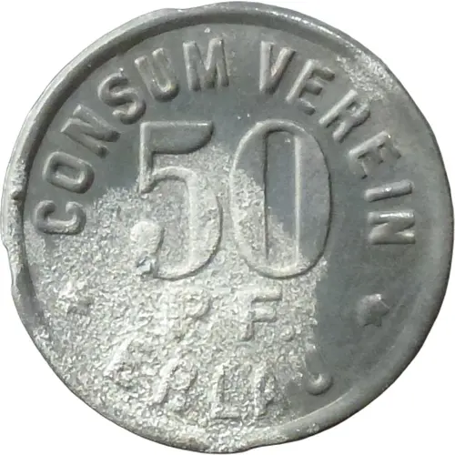 | Obverse lettering | CONSUM VEREIN 50 PF. ERLAU |