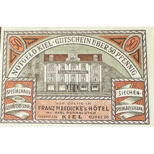 | Issuer | City of Kiel (notgeld) (Prussian province of Schleswig-Holstein) |