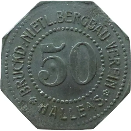 | Obverse lettering | BRUCKD.-NIETL BERGBAU VEREIN 50 ✿ HALLE A/S ✿ |