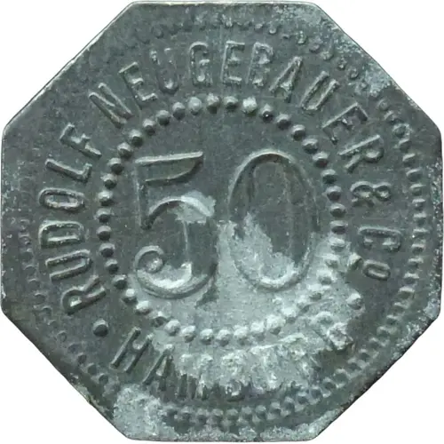 | Obverse lettering | RUDOLF NEUGEBAUER & C° 50 ● HAMBURG ● |