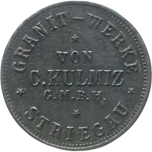 | Obverse lettering | GRANIT - WERKE VON C. KULMIZ G.M.B.H. STRIEGAU |