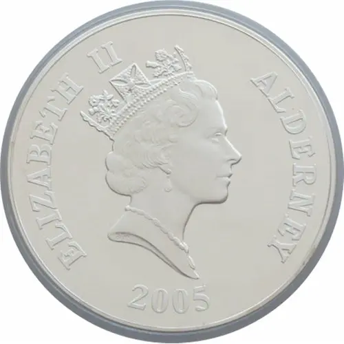 | Obverse lettering | ELIZABETH II ALDERNEY RDM 2005 |