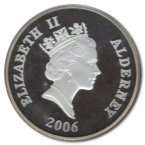 | Obverse lettering | ELIZABETH II ALDERNEY RDM 2006 |