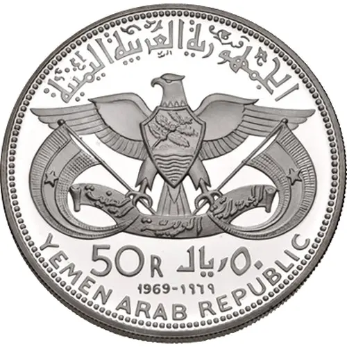 | Obverse lettering | الجمهورية العربية اليمنية الجمهورية العربية اليمنية 50 R ٥٠ ﷼ 1969 - ١٩٦٩ YEMEN ARAB REPUBLIC |
