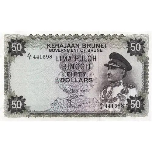 | Obverse lettering | KERAJAAN BRUNEI GOVERNMENT OF BRUNEI LIMA PULOH RINGGIT FIFTY DOLLARS SULTAN |