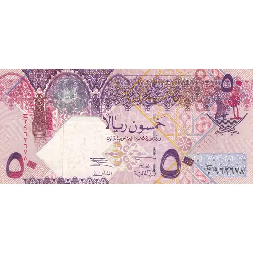 | Mô tả mặt sau | Qatar Central Bank buiilding, Oyster & Pearl monument |