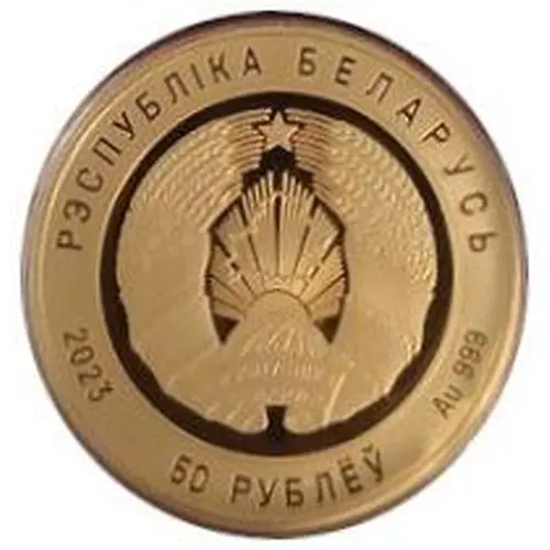 | Averslegende | РЭСПУБЛІКА БЕЛАРУСЬ 2023 Au 999 50 РУБЛЁЎ (Translation: Republic of Belarus 50 Roubles) |