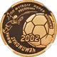 | Reverse description | The stylised picture of a footballer shooting the ball, the date on the ball - `2002`. The inscription along the rim: `ЧЕМПИОНАТ МИРА ПО ФУТБОЛУ РЕСПУБЛИКА КОРЕЯ ЯПОНИЯ` (FOOTBALL WORLD`S CUP REPUBLIC OF KOREA JAPAN). |
