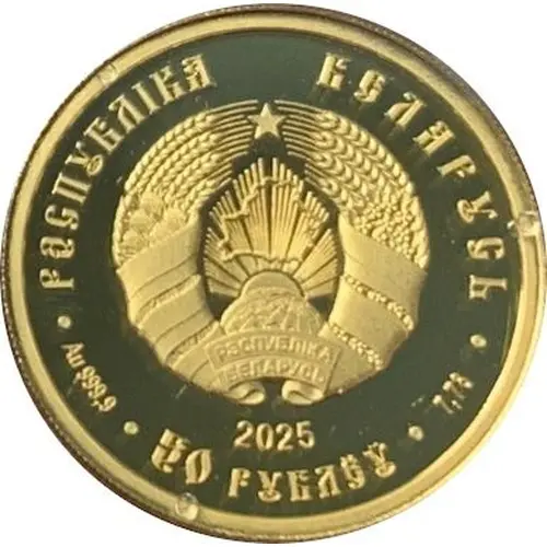 | 正面铭文 | РЭСПУБЛІКА БЕЛАРУСЬ Au 999,9 7,78 2025 50 РУБЛЁЎ (Translation: REPUBLIC OF BELARUS Au 999,9 7,78 2025 50 ROUBLES) |