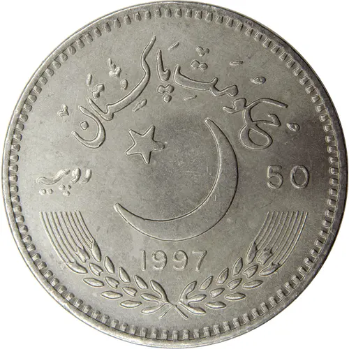 | Opis líce | حکومت پاکستان 50 روپیہ 1997 (Translation: Government of Pakistan 50 Rupee 1997) |