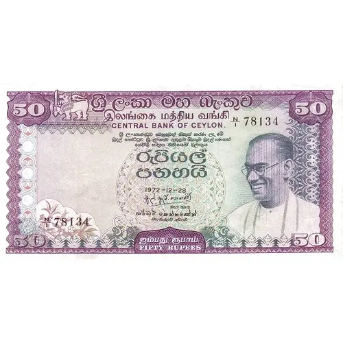 | Reverse lettering | Central Bank of Ceylon Fifty Rupees |