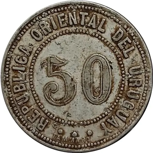 Obverse lettering • REPUBLICA ORIENTAL DEL URUGUAY • 50 • TAMMARO