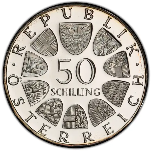 | Obverse lettering | · REPUBLIK · 50 SCHILLING ÖSTERREICH |