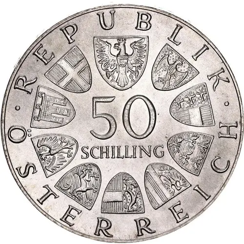 | Obverse lettering | · REPUBLIK · 50 SCHILLING ÖSTERREICH |