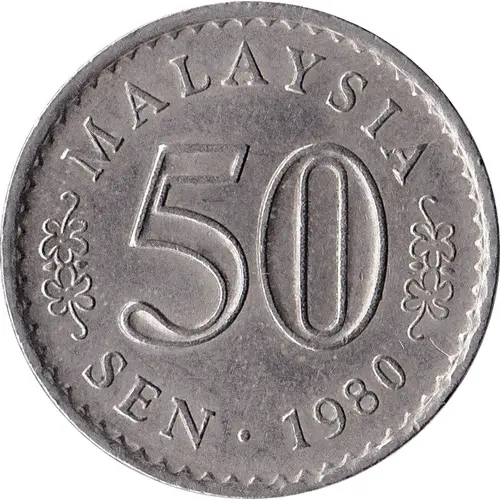 Obverse lettering MALAYSIA 50 SEN · 1980