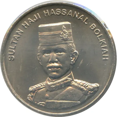 | توضیحات روی سکه | Effigy of Sultan Haji Hassanal Bolkiah, wearing a military uniform and hat |