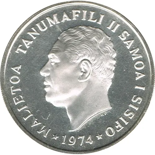 | Opschrift voorzijde | MALIETOA TANUMAFILI II SAMOA I SISIFO 1974 |