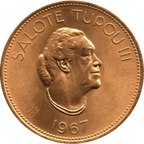 | Obverse lettering | SALOTE TUPOU III IN MEMORIAM 1967 IN MEMORIAM 1965 + 1970 1965 + 1970 |