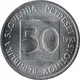 | Mô tả mặt trước | Embossed square surface with the number `50` impressed into it, the legend `REPUBLIKA SLOVENIJA` running to the left, and the denomination in words reading `PETDESET STOTINOV` and the date to the right |