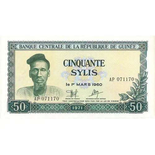 Banque centrale de la republique de Guinée CINQUANTE SYLIS Le 1er MARS 1960 50 1971 50 |