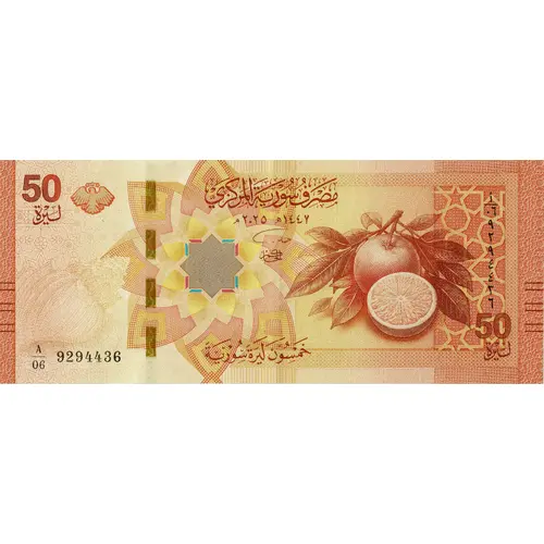 Reverse description Central Bank of Syria headquarters and Dome of the Treasury of the Umayyad Mosque.