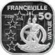 The arms of Vanuatu featuring a Melanesian warrior standing in front of a curved boar`s tooth above a scroll reading `LONG GOD YUMI STANAP` and the date split by the warrior. Four stars. Date and value. |