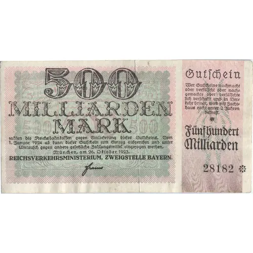 | Value | 500 000 000 000 Mark (500 000 000 000) |