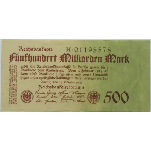 | Value | 500 000 000 000 Mark (500 000 000 000) |