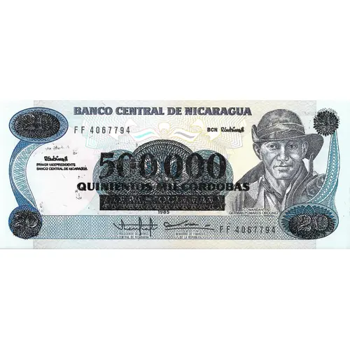 BANCO CENTRAL DE NICARAGUA 500.000 QUINIENTOS MIL CORDOBAS COMANDANTE GERMAN POMARES ORDONEZ |
