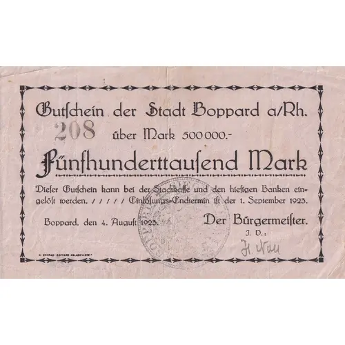 | صادرکننده | City of Boppard (Prussian province of Rhine) |