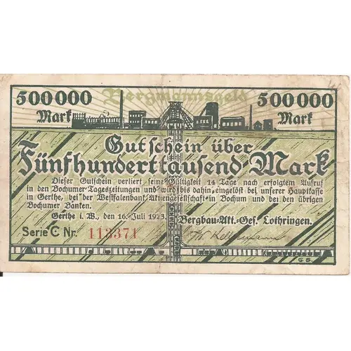 500 000 Mark Bergbau-Aktien-Gesellschaft Lothringen