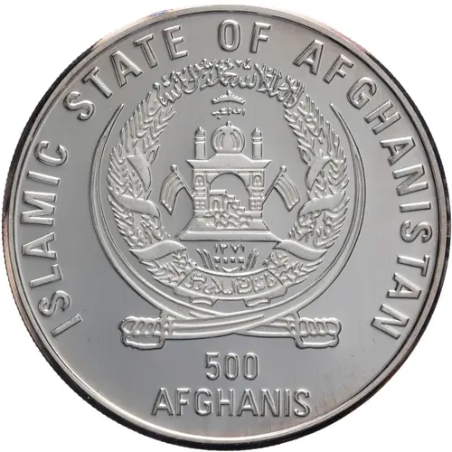 | Obverse lettering | ISLAMIC STATE OF AFGHANISTAN 500 AFGHANIS |