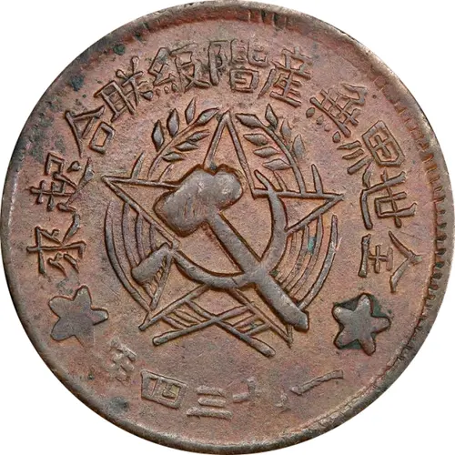 | Надписи аверса | 夾赿合朕級階產無界世全 年四三九一 (Translation: Proletariats of the world, unite! Year 1934) |