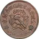 | Описание аверса | Hammer and sickle over star and wreath, all surrounded by Chinese ideograms. |