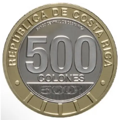 | Obverse lettering | REPÚBLICA DE COSTA RICA BANCO CENTRAL DE COSTA RICA 500 COLONES (Translation: Republic of Costa Rica Central Bank of Costa Rica) |