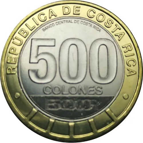 | Opschrift voorzijde | REPÚBLICA DE COSTA RICA BANCO CENTRAL DE COSTA RICA 500 COLONES (Translation: Republic of Costa Rica Central Bank of Costa Rica) |