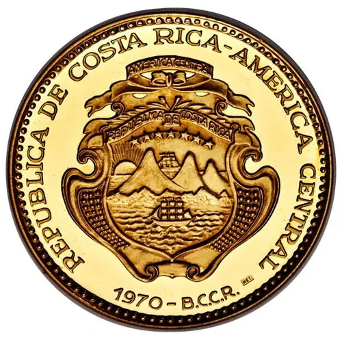 | Obverse lettering | REPUBLICA DE COSTA RICA - AMERICA CENTRAL AMERICA CENTRAL REPUBLICA DE COSTA RICA 1970 - B.C.C.R. (Translation: Republic of Costa Rica - Central America Central America Republic of Costa Rica) |