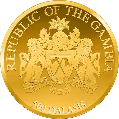 | Obverse lettering | REPUBLIC OF THE GAMBIA PROGRESS PEACE PROSPARITY 500 DALASIS |