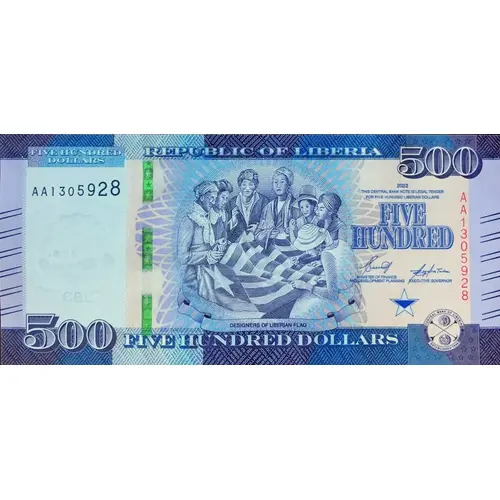 500 CENTRAL BANK OF LIBERIA 500 500 FIVE HUNDRED DOLLARS 500 |