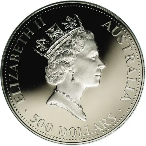 | Obverse lettering | ELIZABETH II AUSTRALIA 500 DOLLARS RDM |