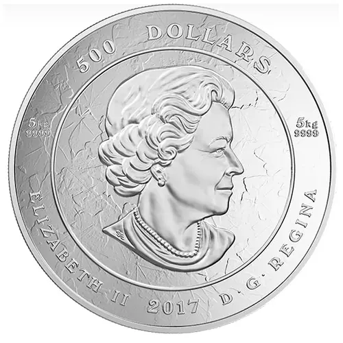 | Obverse lettering | 500 DOLLARS 5kg 5kg 9999 9999 SB ELIZABETH II 2017 D • G • REGINA (Translation: Elizabeth II Queen by the grace of God) |