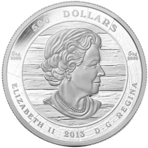 | Legenda do anverso | 500 DOLLARS 5kg 5kg 9999 SB 9999 ELIZABETH II 2013 D • G • REGINA (Translation: Elizabeth II Queen by the grace of God) |